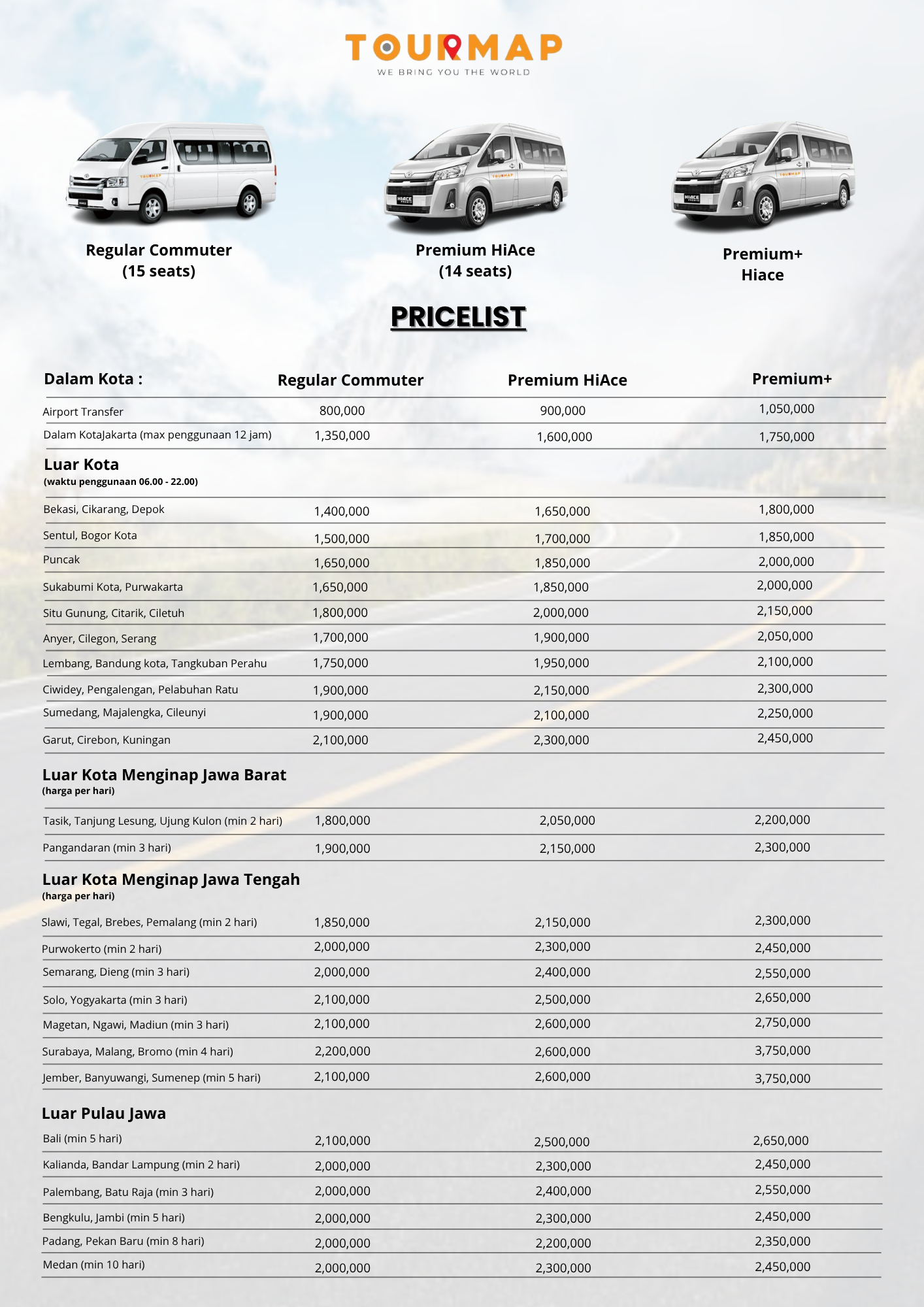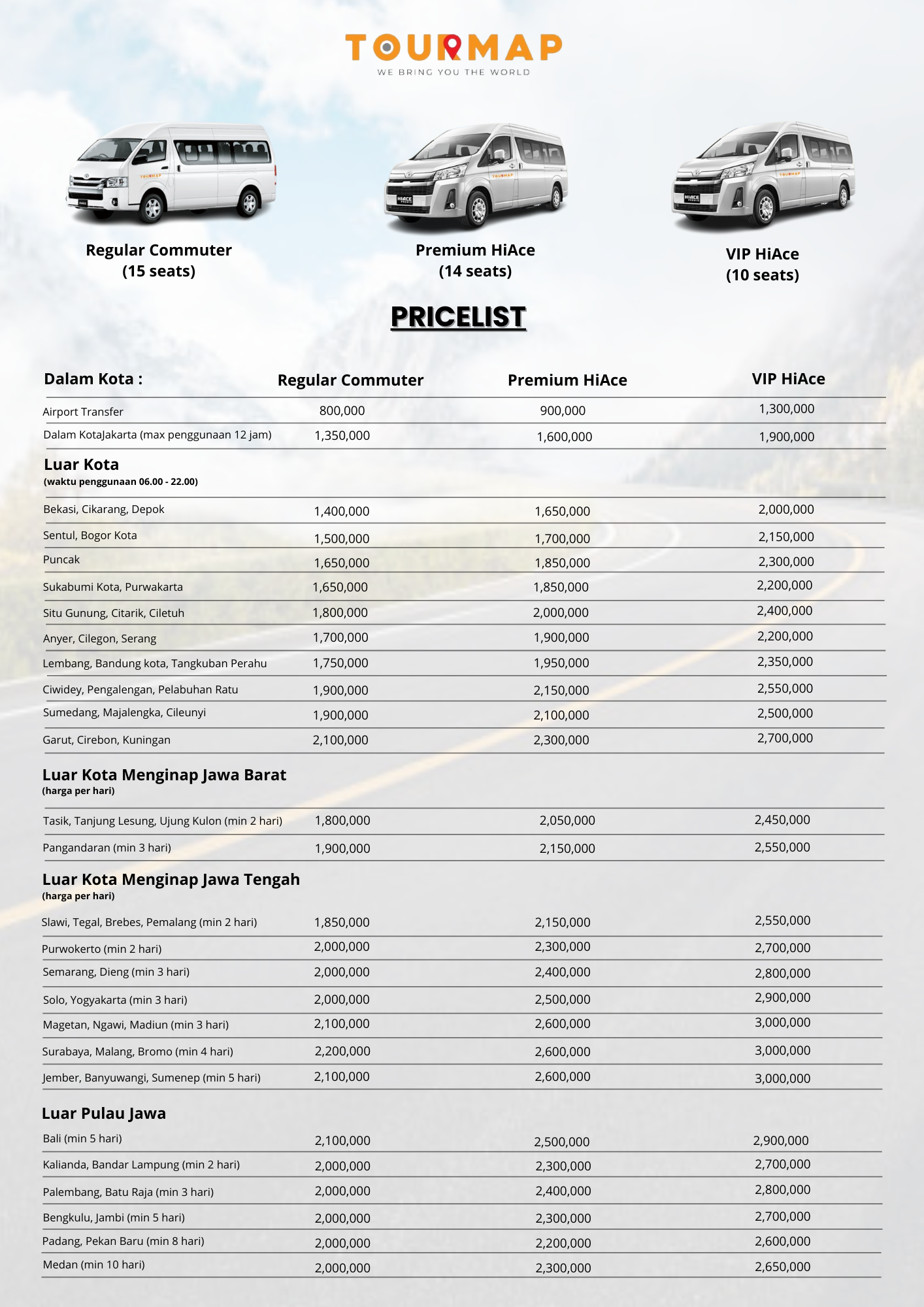 Harga Sewa Hiace Tourmap